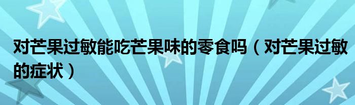大家好,知识小编来为大家解答以上的问题。对芒果过敏能吃芒果味的零食吗,对芒果过敏的症状很多人还不知道,现在让我们一起来看看吧!