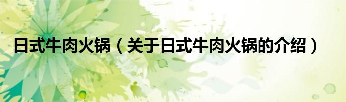 大家好,小新来为大家解答以上的问题。日式牛肉火锅,关于日式牛肉火锅的介绍很多人还不知道,现在让我们一起来看看吧!