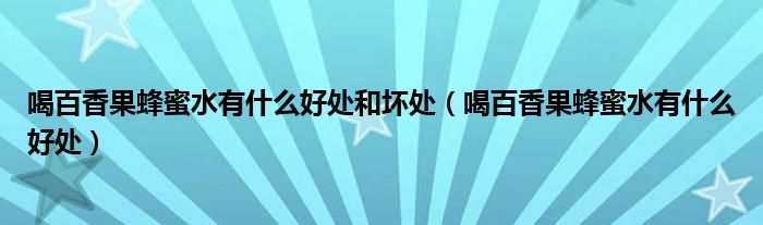 摘要大家好,知识小编来为大家解答以上的问题。喝百香果蜂蜜水有什么好处和坏处,喝百香果蜂蜜水有什么好处很多人还不知道,现在让我们一起来看