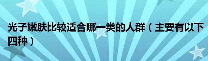 大家好,伊人来为大家解答以上问题。光子嫩肤比较适合哪一类的人群,主要有以下四种很多人还不知道,现在让我们一起来看看吧!