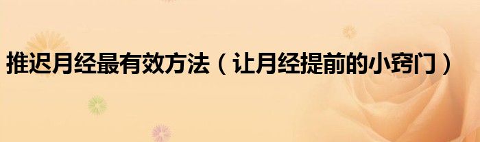 大家好,知识小编来为大家解答以上的问题。推迟月经最有效方法,让月经提前的小窍门很多人还不知道,现在让我们一起来看看吧!