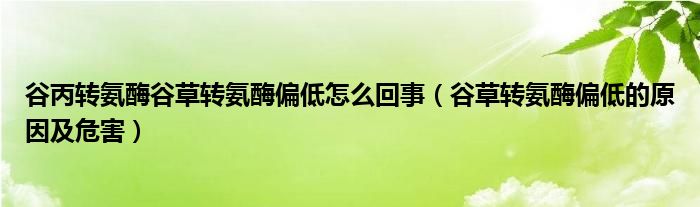 大家好,知识小编来为大家解答以上的问题。谷丙转氨酶谷草转氨酶偏低怎么回事,谷草转氨酶偏低的原因及危害很多人还不知道,现在让我们一起来看看吧!