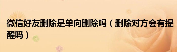 大家好,伊人来为大家解答以上问题。微信好友删除是单向删除吗,删除对方会有提醒吗很多人还不知道,现在让我们一起来看看吧!