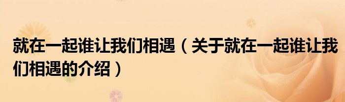 大家好,小新来为大家解答以上的问题。就在一起谁让我们相遇,关于就在一起谁让我们相遇的介绍很多人还不知道,现在让我们一起来看看吧!