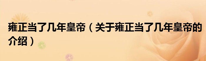 大家好,小新来为大家解答以上的问题。雍正当了几年皇帝,关于雍正当了几年皇帝的介绍很多人还不知道,现在让我们一起来看看吧!