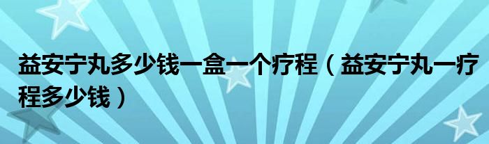 大家好,知识小编来为大家解答以上的问题。益安宁丸多少钱一盒一个疗程,益安宁丸一疗程多少钱很多人还不知道,现在让我们一起来看看吧!