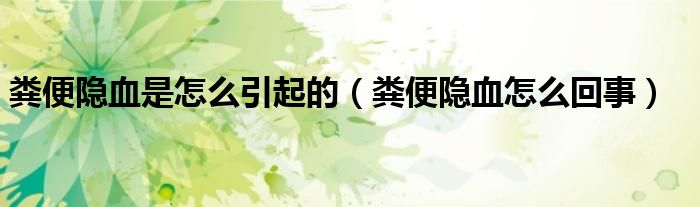 大家好,知识小编来为大家解答以上的问题。粪便隐血是怎么引起的,粪便隐血怎么回事很多人还不知道,现在让我们一起来看看吧!