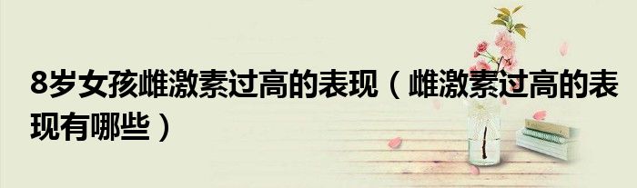 大家好,知识小编来为大家解答以上的问题。8岁女孩雌激素过高的表现,雌激素过高的表现有哪些很多人还不知道,现在让我们一起来看看吧!