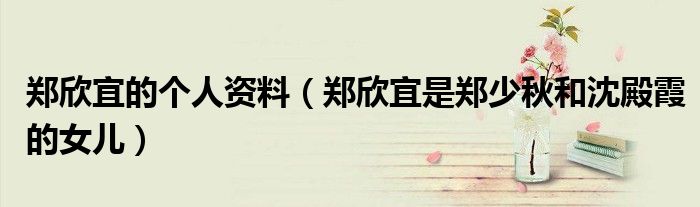 大家好,伊人来为大家解答以上问题。郑欣宜的个人资料,郑欣宜是郑少秋和沈殿霞的女儿很多人还不知道,现在让我们一起来看看吧!