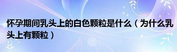 摘要大家好,知识小编来为大家解答以上的问题。怀孕期间乳头上的白色颗粒是什么,为什么乳头上有颗粒很多人还不知道,现在让我们一起来看看吧!