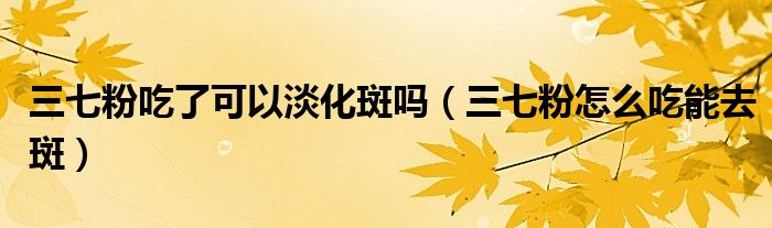 摘要大家好,知识小编来为大家解答以上的问题。三七粉吃了可以淡化斑吗,三七粉怎么吃能去斑很多人还不知道,现在让我们一起来看看吧!三七祛斑