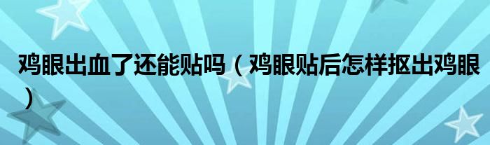大家好,知识小编来为大家解答以上的问题。鸡眼出血了还能贴吗,鸡眼贴后怎样抠出鸡眼很多人还不知道,现在让我们一起来看看吧!