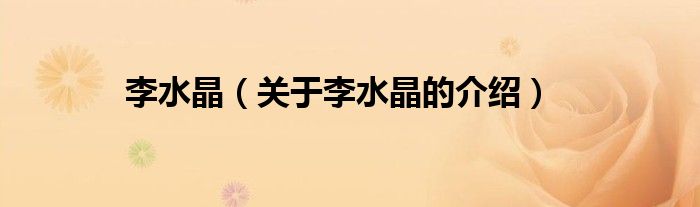 大家好,小新来为大家解答以上的问题。李水晶,关于李水晶的介绍很多人还不知道,现在让我们一起来看看吧!