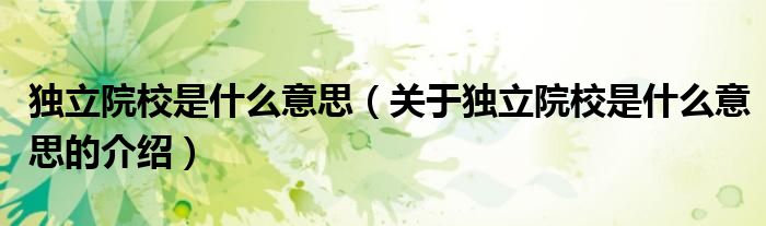 摘要大家好,小新来为大家解答以上的问题。独立院校是什么意思,关于独立院校是什么意思的介绍很多人还不知道,现在让我们一起来看看吧!1、民
