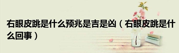 大家好,知识小编来为大家解答以上的问题。右眼皮跳是什么预兆是吉是凶,右眼皮跳是什么回事很多人还不知道,现在让我们一起来看看吧!