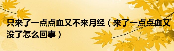 大家好,知识小编来为大家解答以上的问题。只来了一点点血又不来月经,来了一点点血又没了怎么回事很多人还不知道,现在让我们一起来看看吧!