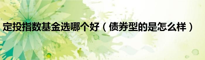 大家好,伊人来为大家解答以上问题。定投指数基金选哪个好,债券型的是怎么样很多人还不知道,现在让我们一起来看看吧!