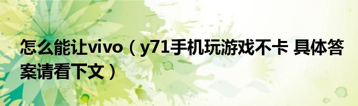 大家好,伊人来为大家解答以上问题。怎么能让vivo,y71手机玩游戏不卡 具体答案请看下文很多人还不知道,现在让我们一起来看看吧!