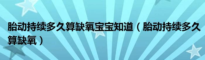 大家好,知识小编来为大家解答以上的问题。胎动持续多久算缺氧宝宝知道,胎动持续多久算缺氧很多人还不知道,现在让我们一起来看看吧!