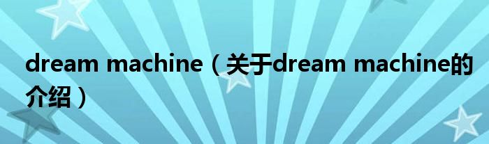 大家好,小新来为大家解答以上的问题。dream machine,关于dream machine的介绍很多人还不知道,现在让我们一起来看看吧!
