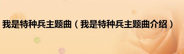 摘要大家好,伊人来为大家解答以上问题。我是特种兵主题曲,我是特种兵主题曲介绍很多人还不知道,现在让我们一起来看看吧!1、我的主题曲是《