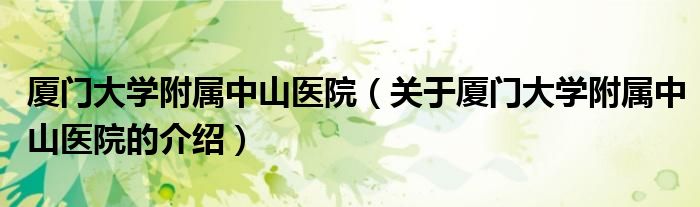 1、厦门大学附属中山医院前身为厦门中山医院。