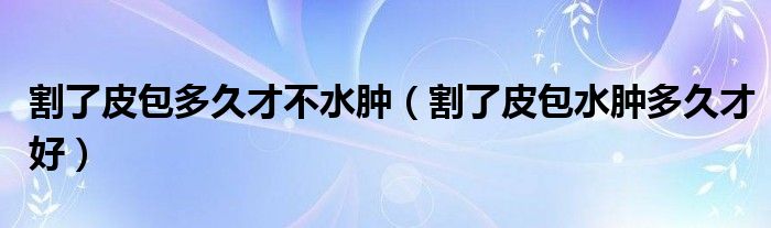 大家好,知识小编来为大家解答以上的问题。割了皮包多久才不水肿,割了皮包水肿多久才好很多人还不知道,现在让我们一起来看看吧!