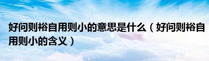 大家好,伊人来为大家解答以上问题。好问则裕自用则小的意思是什么,好问则裕自用则小的含义很多人还不知道,现在让我们一起来看看吧!