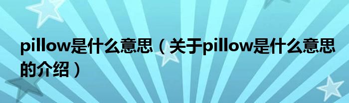 摘要大家好,小新来为大家解答以上的问题。pillow是什么意思,关于pillow是什么意思的介绍很多人还不知道,现在让我们一起来看看吧!1、Pillow