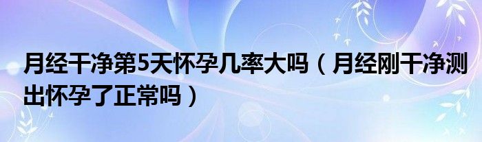 摘要大家好,小新来为大家解答以上的问题。月经干净第5天怀孕几率大吗,月经刚干净测出怀孕了正常吗很多人还不知道,现在让我们一起来看看吧!