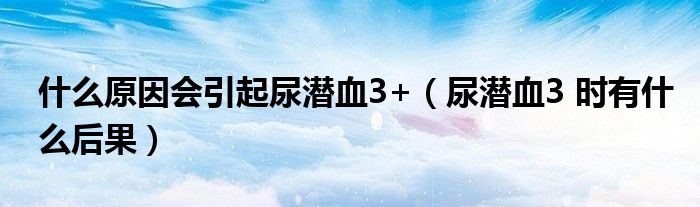摘要 大家好,小新来为大家解答以上的问题。什么原因会引起尿潜血3+,尿潜血3 时有什么后果很多人还不知道,现在让我们一起来看看吧!1、尿潜血