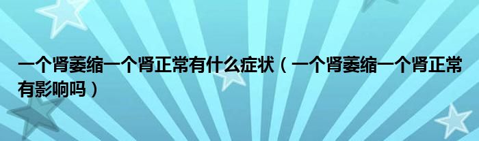 摘要大家好,小新来为大家解答以上的问题。一个肾萎缩一个肾正常有什么症状,一个肾萎缩一个肾正常有影响吗很多人还不知道,现在让我们一起来看