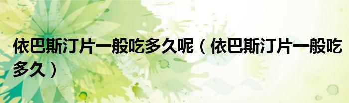 摘要大家好,小新来为大家解答以上的问题。依巴斯汀片一般吃多久呢,依巴斯汀片一般吃多久很多人还不知道,现在让我们一起来看看吧!依巴斯汀片