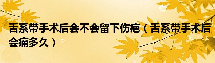 摘要大家好,小新来为大家解答以上的问题。舌系带手术后会不会留下伤疤,舌系带手术后会痛多久很多人还不知道,现在让我们一起来看看吧!舌系带
