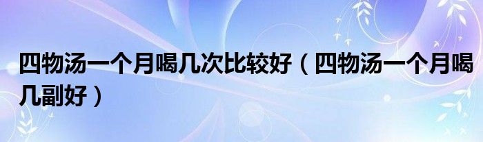 大家好,小新来为大家解答以上的问题。四物汤一个月喝几次比较好,四物汤一个月喝几副好很多人还不知道,现在让我们一起来看看吧!