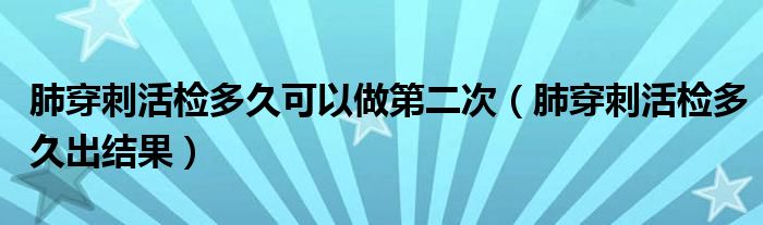 大家好,小新来为大家解答以上的问题。肺穿刺活检多久可以做第二次,肺穿刺活检多久出结果很多人还不知道,现在让我们一起来看看吧!
