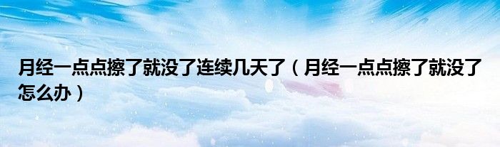 大家好,小新来为大家解答以上的问题。月经一点点擦了就没了连续几天了,月经一点点擦了就没了怎么办很多人还不知道,现在让我们一起来看看吧!