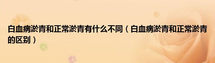 一般情况下,受伤后身体的某些部位可能会出现淤青,医学上称之为挫伤或淤青。是良性的,常因小毛细血管损伤破裂所致,用手按压不会变白。因为有外伤的原因,这个淤青按压的时候可能会有疼痛感。白血病患者有时可形成无明显诱因的皮下淤青,主要由血小板减少引起。因为血小板减少,除了身体某些部位有淤青外,身体其他部位也会有不同程度的出血,可出现皮下出血点、淤青等。因为主要和血小板减少有关,不是碰撞等因素造成的,所以大部分是无痛的。所以白血病淤青和正常淤青的原因是不一样的,淤青的原因也不一样。同时,白血病的淤青是无痛的,而外力造成的淤青可能会有轻微的疼痛,很容易分辨。本文到此结束,希望对大家有所帮助。