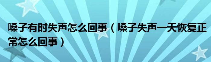 摘要大家好,小新来为大家解答以上的问题。嗓子有时失声怎么回事,嗓子失声一天恢复正常怎么回事很多人还不知道,现在让我们一起来看看吧!声音