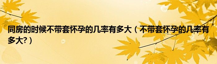 摘要大家好,小新来为大家解答以上的问题。同房的时候不带套怀孕的几率有多大,不带套怀孕的几率有多大?很多人还不知道,现在让我们一起来看看