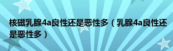 大家好,小新来为大家解答以上的问题。核磁乳腺4a良性还是恶性多,乳腺4a良性还是恶性多很多人还不知道,现在让我们一起来看看吧!