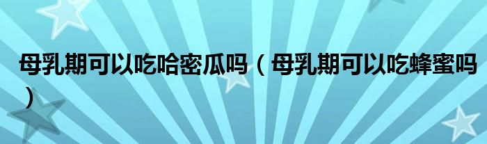 大家好,小新来为大家解答以上的问题。母乳期可以吃哈密瓜吗,母乳期可以吃蜂蜜吗很多人还不知道,现在让我们一起来看看吧!