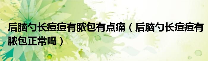 摘要大家好,小新来为大家解答以上的问题。后脑勺长痘痘有脓包有点痛,后脑勺长痘痘有脓包正常吗很多人还不知道,现在让我们一起来看看吧!后脑