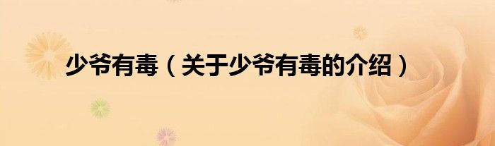 大家好,小新来为大家解答以上的问题。少爷有毒,关于少爷有毒的介绍很多人还不知道,现在让我们一起来看看吧!