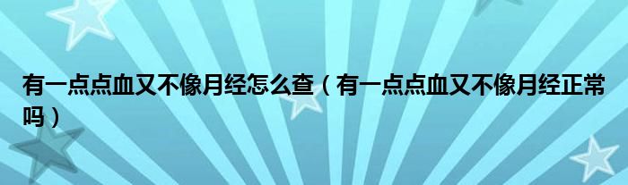 大家好,小新来为大家解答以上的问题。有一点点血又不像月经怎么查,有一点点血又不像月经正常吗很多人还不知道,现在让我们一起来看看吧!