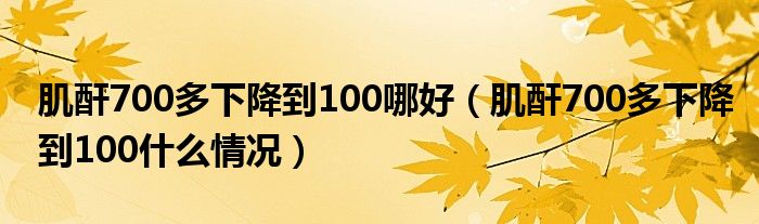 摘要大家好,小新来为大家解答以上的问题。肌酐700多下降到100哪好,肌酐700多下降到100什么情况很多人还不知道,现在让我们一起来看看吧!肌酐