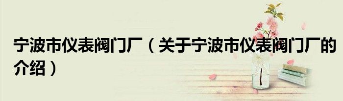 大家好,小新来为大家解答以上的问题。宁波市仪表阀门厂,关于宁波市仪表阀门厂的介绍很多人还不知道,现在让我们一起来看看吧!