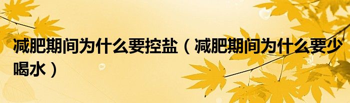 大家好,小新来为大家解答以上的问题。减肥期间为什么要控盐,减肥期间为什么要少喝水很多人还不知道,现在让我们一起来看看吧!