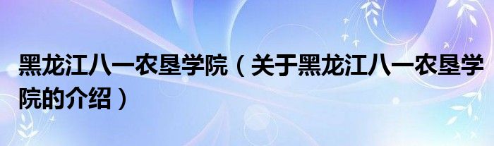 摘要大家好,小新来为大家解答以上的问题。黑龙江八一农垦学院,关于黑龙江八一农垦学院的介绍很多人还不知道,现在让我们一起来看看吧!1、信
