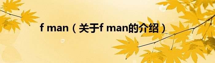 大家好,小新来为大家解答以上的问题。f man,关于f man的介绍很多人还不知道,现在让我们一起来看看吧!